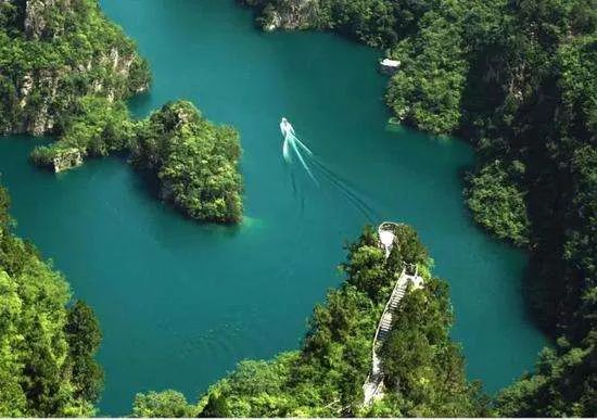 游船駛過萬重山,翡翠湖上蕩碧波