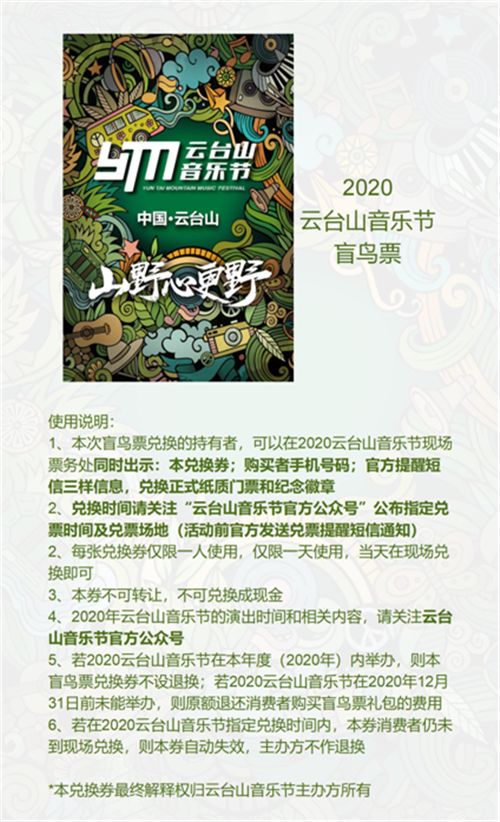 6月5日20:00--21:00,房東的貓帶著2020云臺(tái)山音樂(lè)節(jié)“盲鳥票禮包”與你相約抖音直播間(房東的貓抖音:196672947)。