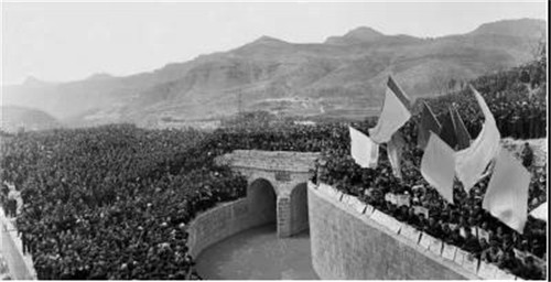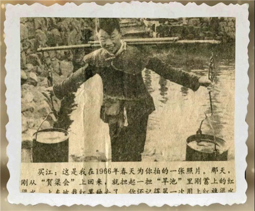 紅旗渠通水那天,張買江捧著獎(jiǎng)狀從表彰大會(huì)回來,鄉(xiāng)親們沒有一個(gè)人打水,他們要等著張買江挑起這紅旗渠的第一桶水。