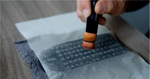 傳拓又被稱為拓印,它是以青銅器、秦磚漢瓦、畫像磚石、碑刻、石雕石刻等文物為對象,以紙和墨為原料上墨拓印復(fù)制文字和圖案的傳統(tǒng)手工藝技術(shù)。