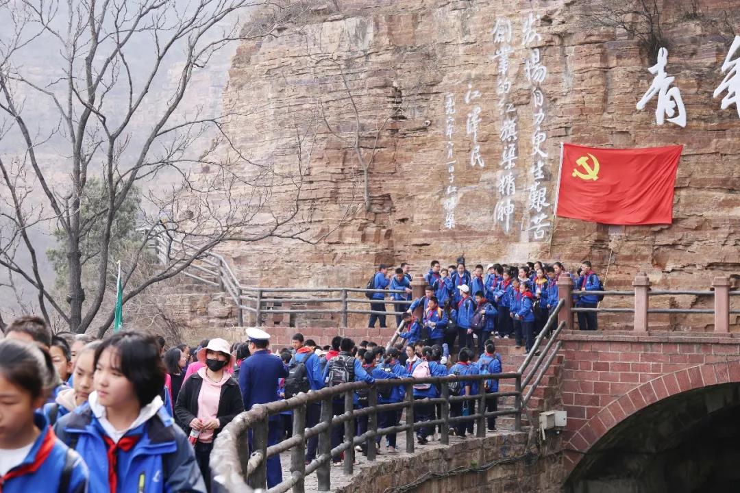 4月4日,安陽市第六中學(xué)600余名師生的研學(xué)團(tuán)隊(duì)如期而至。同學(xué)們抵達(dá)紅旗渠風(fēng)景區(qū),在講解員的帶領(lǐng)下,深入了解當(dāng)年林縣的干旱歷史和10萬大軍戰(zhàn)太行的感人事跡。