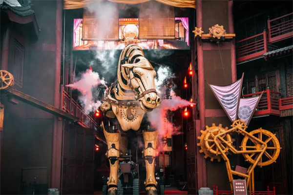 景區(qū)內(nèi),每天有《岳飛槍挑小梁王》《大宋·東京保衛(wèi)戰(zhàn)》《王員外招婿》《氣功噴火》《民俗絕活》等近百場(chǎng)精彩演出,給游客以滿(mǎn)滿(mǎn)的體驗(yàn)感和代入感。