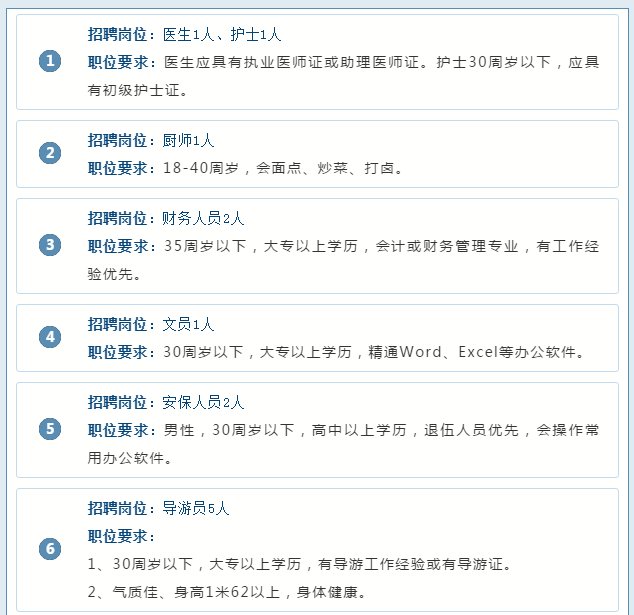 因業(yè)務(wù)需要,青天河景區(qū)現(xiàn)面向社會(huì)招聘工作人員若干,試用期一年,試用期間月薪1800元,試用期滿考核合格后,轉(zhuǎn)為正式員工,繳納五險(xiǎn)一金。