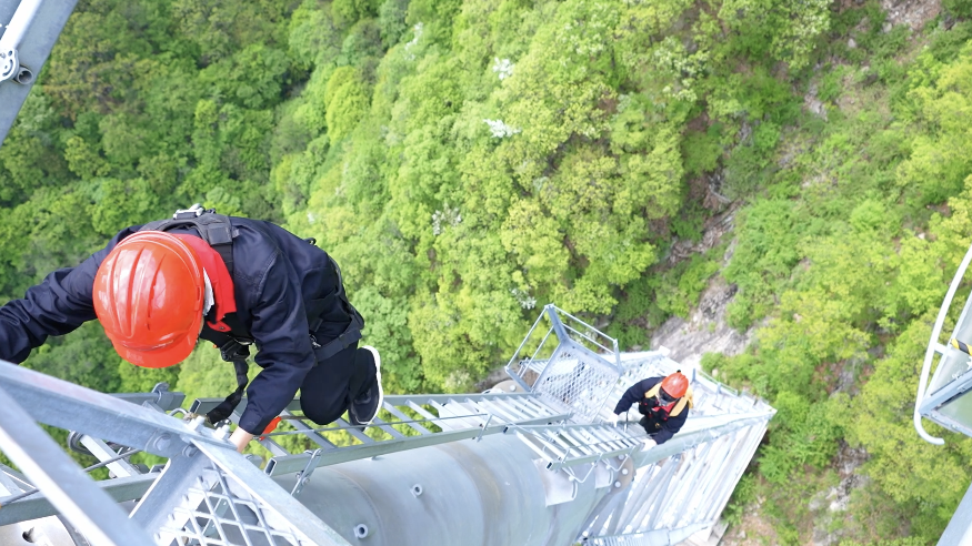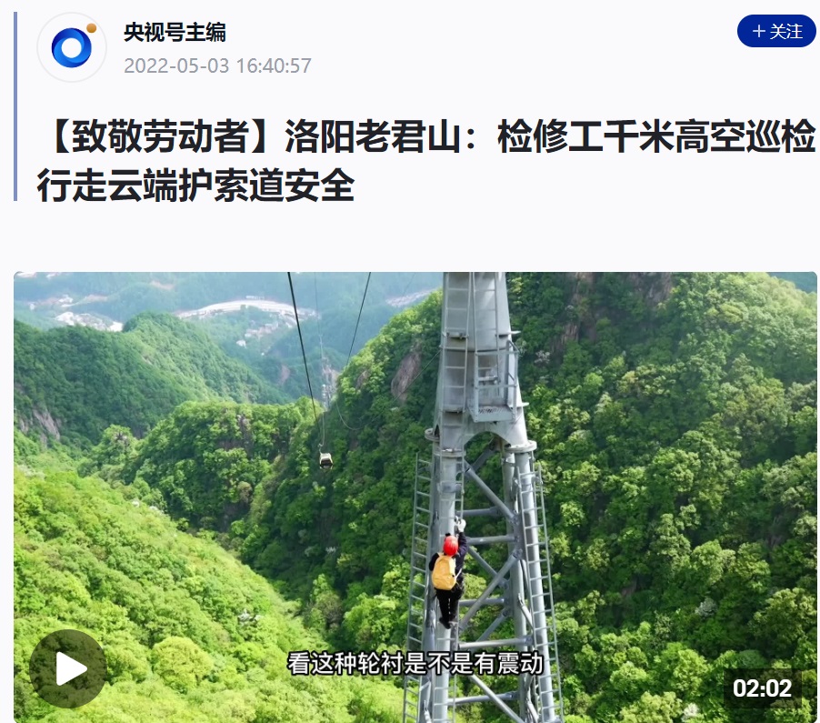 今年的五一小長(zhǎng)假,雖受疫情防控影響,各個(gè)景區(qū)沒有出現(xiàn)較大的客流高峰。在河南洛陽老君山國家級(jí)自然保護(hù)區(qū),周邊區(qū)域的游客還是來了不少,每天有幾千人。老君山景區(qū)的索道檢修人員像往常一樣,每天在高空纜車和支架上,來回穿梭,進(jìn)行索道檢修維護(hù),堅(jiān)守在千米高空確保索道和游客安全。