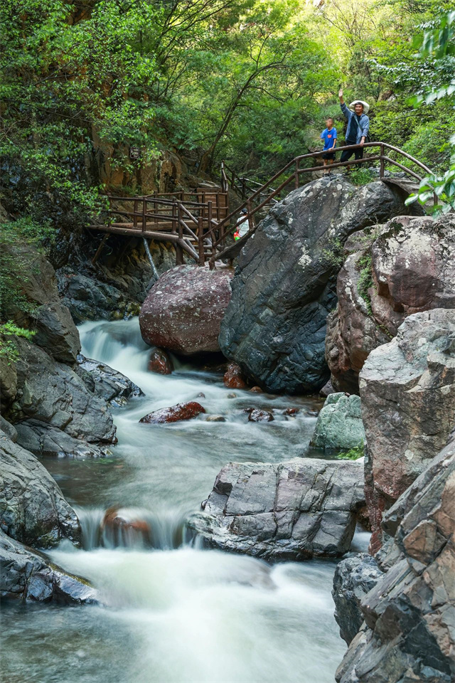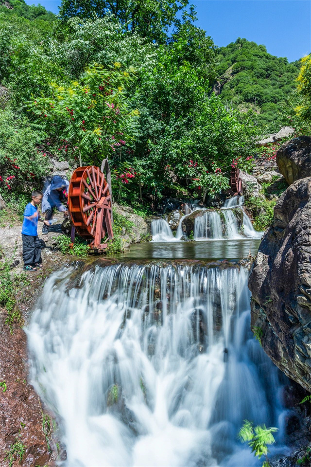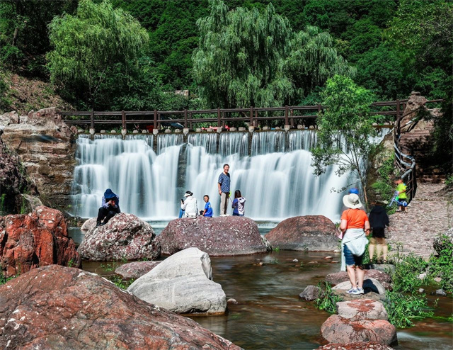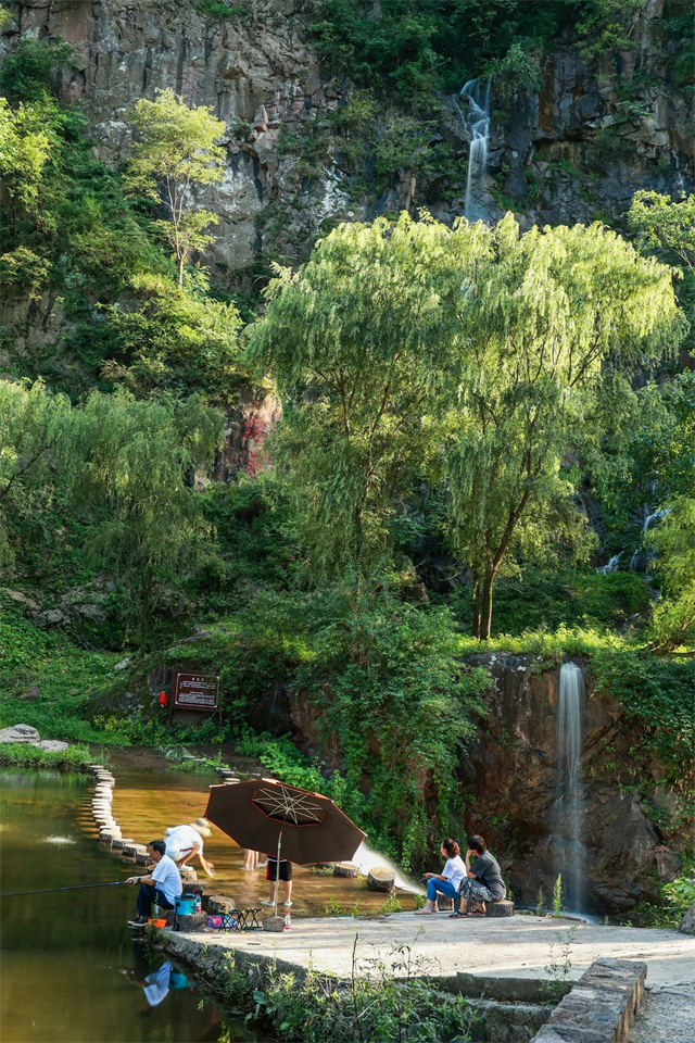 沿山前行隨處可見從山頂一瀉而下的飛瀑與家人和朋友垂釣岸邊傾聽飛瀑的聲音,享受著自然的美景