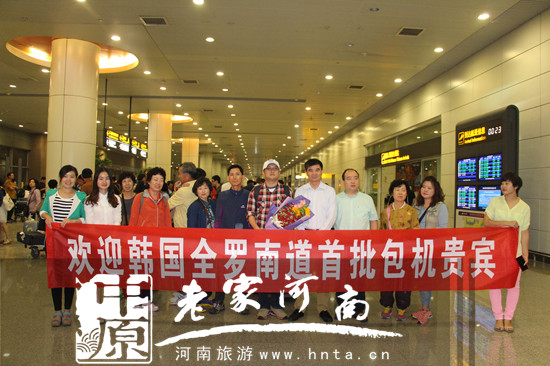 2015年9月26日剛過零點(diǎn),河南鄭州新鄭國(guó)際機(jī)場(chǎng)迎來了一批來自韓國(guó)全羅南道的游客,他們乘坐“海途號(hào)”旅游包機(jī)抵達(dá)鄭州開始河南之旅。這是河南首例全羅南道游客包機(jī)之旅,開辟了河南和韓國(guó)之間統(tǒng)一包機(jī)、雙向互通的旅游互動(dòng)新模式。受河南省旅游局領(lǐng)導(dǎo)委托,河南省旅游協(xié)會(huì)負(fù)責(zé)人周學(xué)海到機(jī)場(chǎng)迎接。