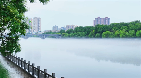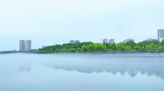 霧氣在浉河岸邊彌漫開來,宛如人間仙境。 歐陽(yáng)國(guó)威 攝