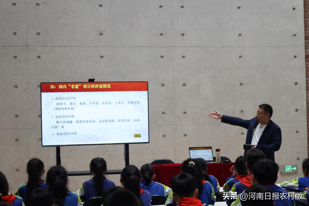 4月18日,安陽市非物質(zhì)文化遺產(chǎn)保護(hù)研究會與安陽市文旅集團(tuán)殷墟考古文旅小鎮(zhèn)共同舉辦了一場別開生面的非遺大講堂活動。活動特別邀請了安陽市非物質(zhì)文化遺產(chǎn)保護(hù)研究會會長王永法先生,以“文化自信 非遺先行”為主題,深入淺出地介紹了非物質(zhì)文化遺產(chǎn)的豐富內(nèi)涵和重要性,安陽市紗廠路小學(xué)師生一百余人認(rèn)真聆聽了王會長的精彩授課。