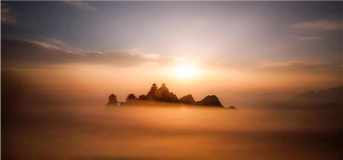 老君山日出東嶺,太陽徐徐升起,一霎那仿若仙境。此時若有云彩,那就是霞光滿天,丹霞似錦。