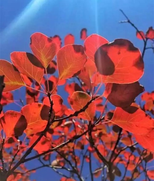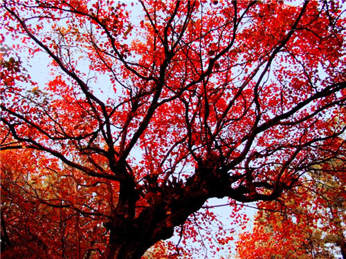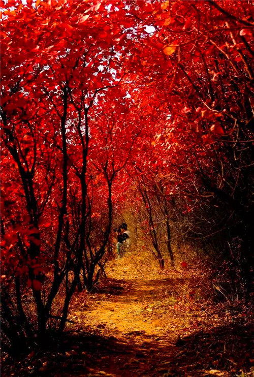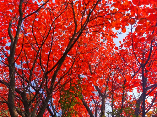深秋的時(shí)節(jié),這里一簇簇一團(tuán)團(tuán),火紅的樹葉映照出了一幅幅絕美的畫卷。