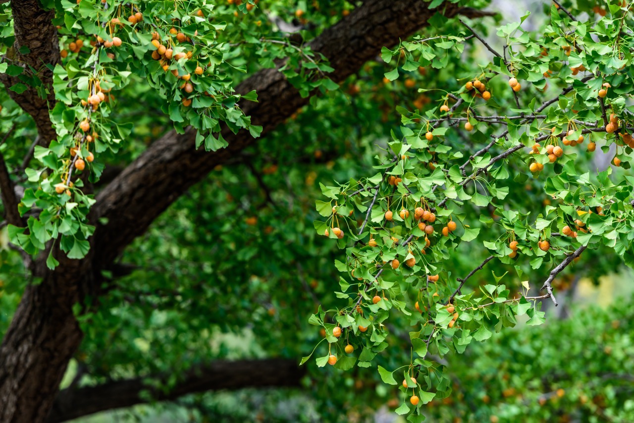 千年銀杏樹,號稱"活化石"。洛陽白云山的古銀杏林百年以上的有一千棵,千年以上的有二百棵。其中一棵雄樹,有2120年,高40多米,由三棵樹組成,長于同一時間,交擠在一起,融為一體,有四圍粗,實(shí)屬罕見。旁一大樹,雌性,枝較平,光結(jié)果不開花;果,10月成熟。雄樹,枝直,4月開花,光開花不結(jié)果。采收銀杏樹一般在10月上旬,震落采收果實(shí)。銀杏剝?nèi)シN殼、薄衣,內(nèi)有黃綠色核仁可食部分。白果營養(yǎng)價值極高,果仁肉糯甜、味美清香,可炒食,亦宜燉食。中醫(yī)用作收斂、化痰、止咳、定喘、補(bǔ)肺、通經(jīng)利尿。