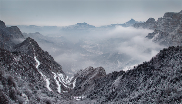 太行大峽谷下雪了