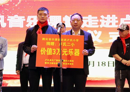 活動(dòng)期間,“騰訊音樂課堂”音樂支教志愿者對(duì)學(xué)校實(shí)際情況進(jìn)行了了解,并捐贈(zèng)了電子琴、吉他、大軍鼓、小軍鼓、少年號(hào)、三角鐵、口琴等110余件音樂器材,這些樂器將用于孩子們?nèi)粘5囊魳氛n堂教學(xué)。盧氏二小一位老師在現(xiàn)場激動(dòng)地表示:“真的是雪中送炭,大城市的孩子有音樂夢(mèng),我們貧困地區(qū)的孩子也應(yīng)該有。盡管音樂教育資源相對(duì)匱乏,但因?yàn)橛嘘P(guān)心和支持音樂教育事業(yè)的叔叔和阿姨們,孩子們音樂夢(mèng)的路上就有了希望燈塔。”