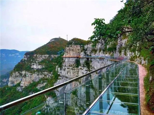 青天河登山索道,全長886.6米,高差475米,角度44.6°,兼具游覽和交通雙功能,為游客提供了新的游覽途徑。在悠揚的音樂聲中沿山勢緩緩而上,佛耳峽、觀音峽勝境便逐漸盡收眼底。東遙峭壁如削,南瞰山水一色,西眺丹水蜿蜒,北視群峰千疊,真可謂是“橫看成嶺側(cè)成峰,遠近高低各不同”。索道的動與山石的靜相結(jié)合,變幻萬千。抵達山巔,在探尋大自然鬼斧神工的同時,可以盡情飽覽靳家?guī)X一年四季的無限風(fēng)光。