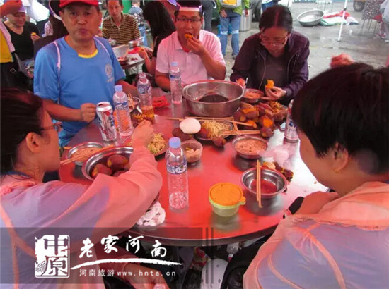 運(yùn)動健兒們首先由五朵山景區(qū)北門出發(fā),步行6公里后抵達(dá)景區(qū)萬福宮停車場。中午,隊(duì)員們在萬福宮停車場免費(fèi)品嘗了五朵山道觀道教養(yǎng)生齋飯?炯t薯、地鍋飯讓隊(duì)員們大快朵頤。