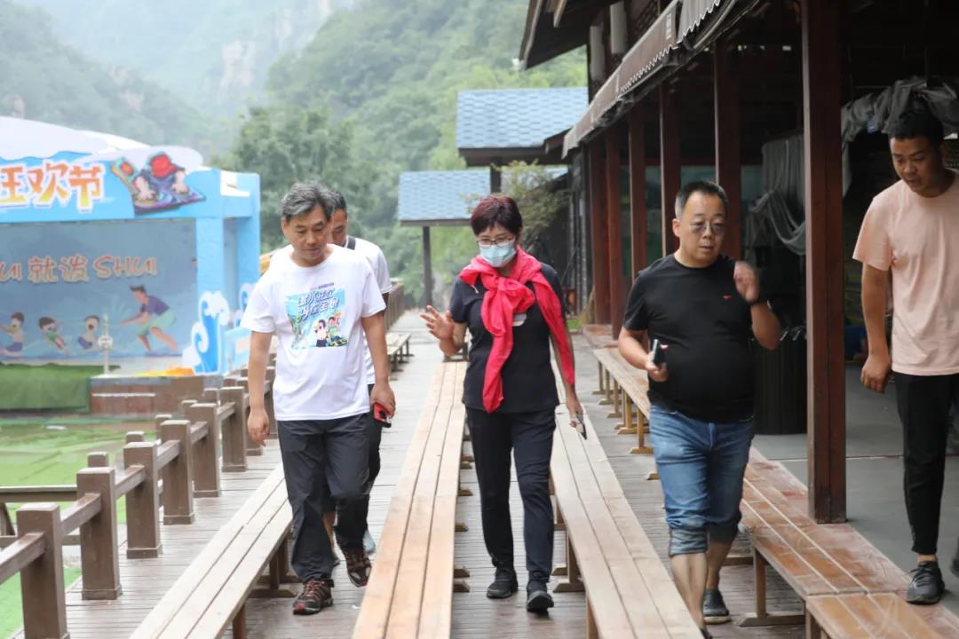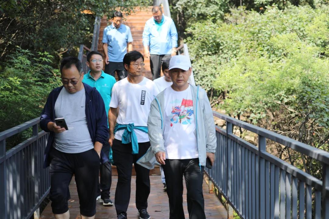 景區(qū)領(lǐng)導(dǎo)帶領(lǐng)管理層團隊對崖上園區(qū)實地勘察,確定施工方案,督促施工進度并慰問了施工隊伍。