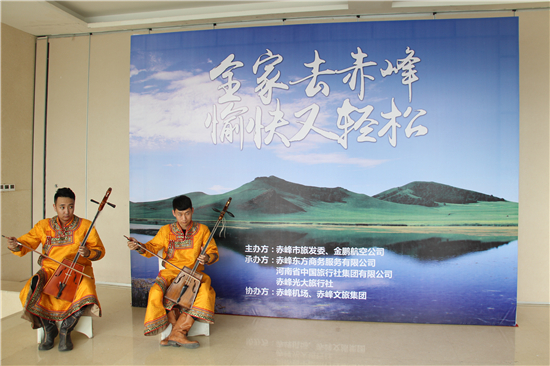 推介會(huì)上,來自大草原的蒙古族姑娘小伙子們用悠揚(yáng)的歌聲和動(dòng)人的舞姿,把赤峰濃郁的草原風(fēng)情和民族文化展現(xiàn)給鄭州的市民。