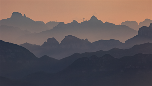 薄霧彌漫,山峰時隱時現(xiàn)