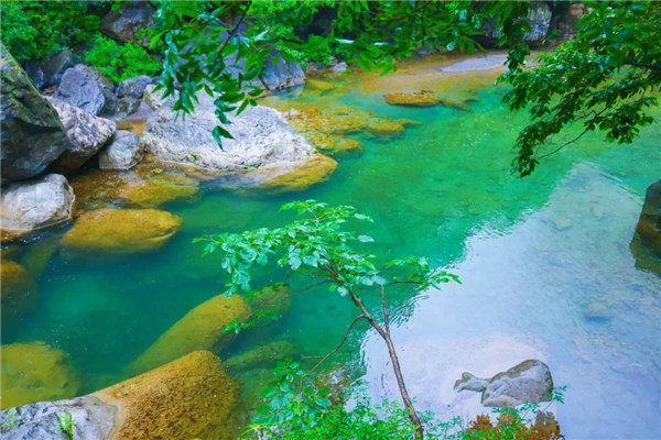 雨后的云臺(tái)山青山如洗,瀑布如練,到處是流水潺潺,山巒青翠,原始森林形成綠色林海千條瀑布、大小溪流匯聚成“海”,漫步在綠意盎然的天然氧吧,沉醉不已。