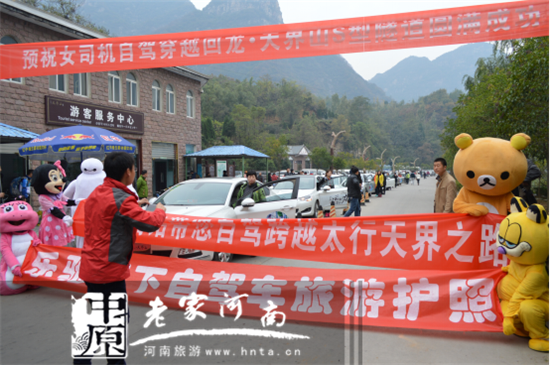 10月31日,由30名美女車手組成的自駕車隊,在深秋時節(jié)穿越新鄉(xiāng)南太行天界山景區(qū),體驗回龍盤山道和隧道的奇險。