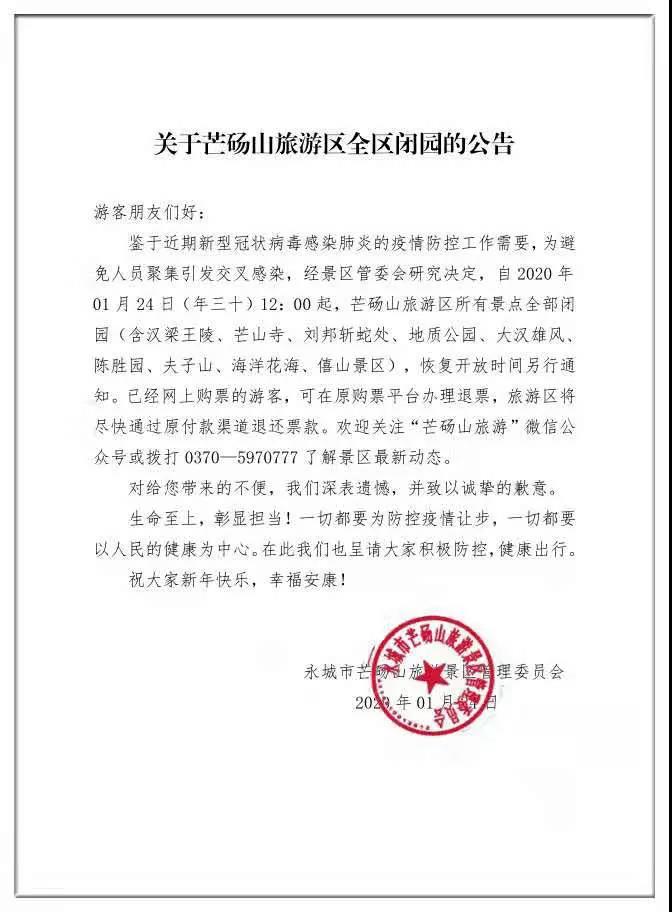根據(jù)河南省文旅廳和永城市人民政府下發(fā)的各項(xiàng)通知進(jìn)行嚴(yán)格落實(shí),前期對(duì)已經(jīng)購票的游客進(jìn)行了妥善的處理,關(guān)閉了芒碭山旅游區(qū)各種線上購票通道;