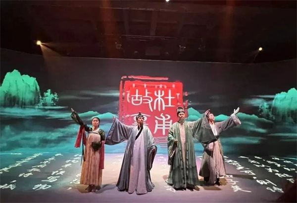 7月7日,杜甫故里大型實(shí)景劇《歸鄉(xiāng)》開演,22分鐘的演出,觀眾可以身臨其境體會(huì)到杜甫跌宕起伏的一生。該劇以“歸鄉(xiāng)”為主題,以杜甫的孫子杜嗣業(yè)請(qǐng)文學(xué)家元稹為杜甫題寫墓志銘為引線,以杜甫詩(shī)歌為切入點(diǎn),敘述杜甫跌宕起伏的一生,并最后魂歸自己的故鄉(xiāng)鞏義的故事!稓w鄉(xiāng)》包含有杜甫困頓長(zhǎng)安、經(jīng)歷安史之亂、漂泊川渝等重要人生歷程,用現(xiàn)代聲光電技術(shù)并結(jié)合演員演出,將杜甫顛沛流離的個(gè)人命運(yùn)融匯于時(shí)代命運(yùn)的大背景之下,給觀眾展現(xiàn)一場(chǎng)現(xiàn)代科技與杜甫文化相結(jié)合的文化盛宴。