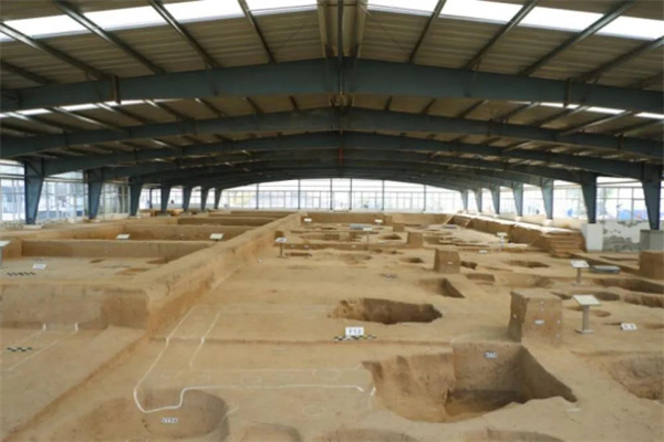 雙槐樹遺址,位于鞏義市河洛鎮(zhèn)雙槐樹村南的高臺(tái)地上,距黃河南岸2公里,伊洛河?xùn)|4公里。2020年系列成果發(fā)布后,獲得社會(huì)廣泛關(guān)注,被評(píng)為“2020年度全國(guó)十大考古發(fā)現(xiàn)”之一,入選“百年百大考古發(fā)現(xiàn)”名單。目前,雙槐樹遺址考古勘探面積近200萬(wàn)平方米,重點(diǎn)發(fā)掘6000余平方米。重要發(fā)現(xiàn):仰韶文化時(shí)期大型環(huán)壕3條,內(nèi)壕與帶有甕城結(jié)構(gòu)門道的圍墻合圍大型中心居址區(qū)1處,仰韶文化墓地4處,夯土祭壇3處,夯土院落基址3處,大型版筑遺跡1處,還出土了一大批仰韶文化時(shí)期彩陶以及與絲綢起源相關(guān)的文物標(biāo)本。雙槐樹遺址文化遺存可分為五期,其中一期為裴李崗文化晚期,二期為仰韶文化中期偏晚,三、四期為仰韶文化晚期,五期為龍山文化早期。