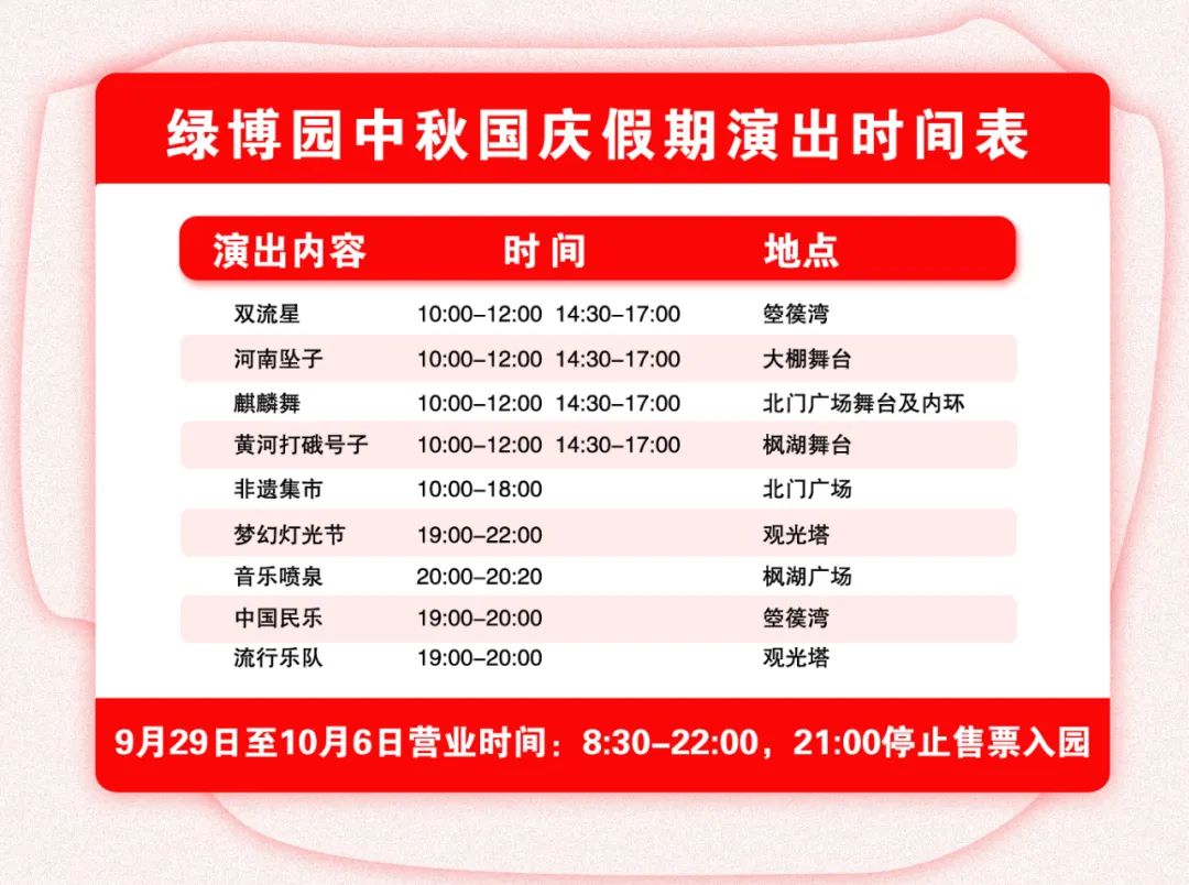 金秋綠博園,花好月正圓。熱鬧每一天,假期放肆嗨。來綠博園聞桂香、看民俗展演、賞璀璨夜景,打卡屬于你的快樂假期!