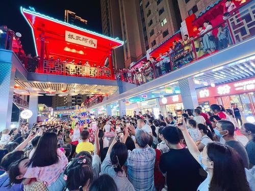 隨著夜幕降臨、霓虹亮起,與吉安北街離得不遠(yuǎn)的廣州市場(chǎng)步行街,也變得熱鬧非凡。悅耳的音樂(lè)、精彩的表演、美味的小吃……廣州市場(chǎng)步行街融合夜購(gòu)、夜食、夜娛、夜秀等業(yè)態(tài)模式,漫步街區(qū)中,還有唱歌、舞蹈以及各種有趣的藝術(shù)表演吸引著游客。此外,各類游戲攤位頗受年輕人和小朋友的喜歡,增添了夜市的互動(dòng)性和娛樂(lè)性。