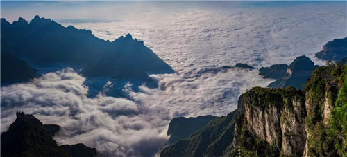 而天界山的云海,波瀾壯闊,大氣磅礴,云海日出更是一絕,相比關山的云海更是不相上下。
