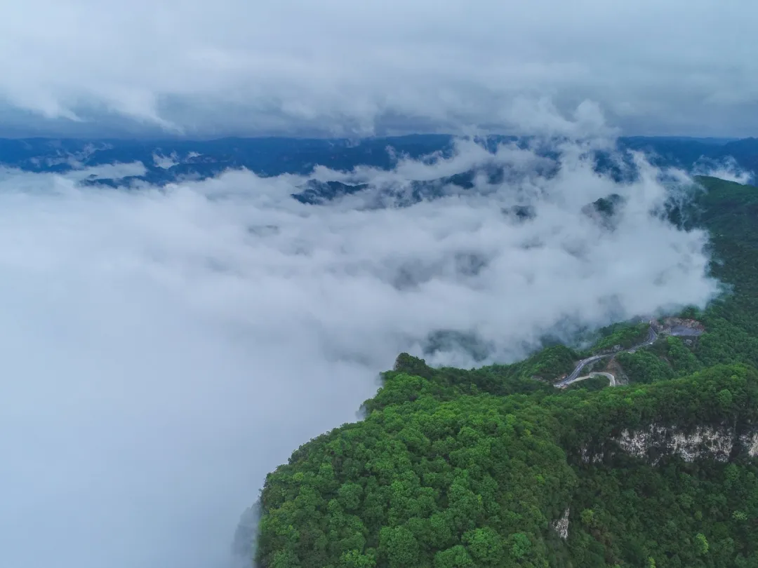 層層云霧纏繞著奇峰異石,漫過天際