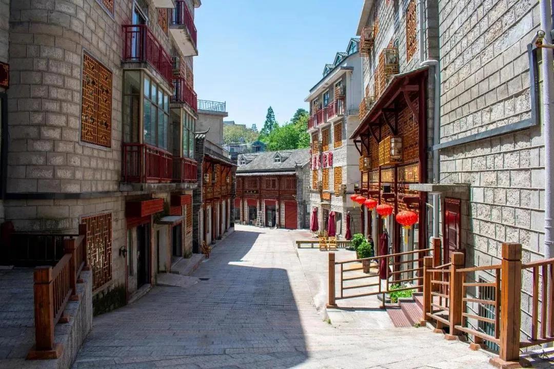 雞公山南北街,因所處的地理位置較高,故稱“天街”。它和西洋別墅群是同時誕生的一對孿生姐妹。雞公山南街古色古香,從月湖至龍子口呈S形,此街1923年前后形成。街道兩邊建筑依山作勢、別有格調(diào)。