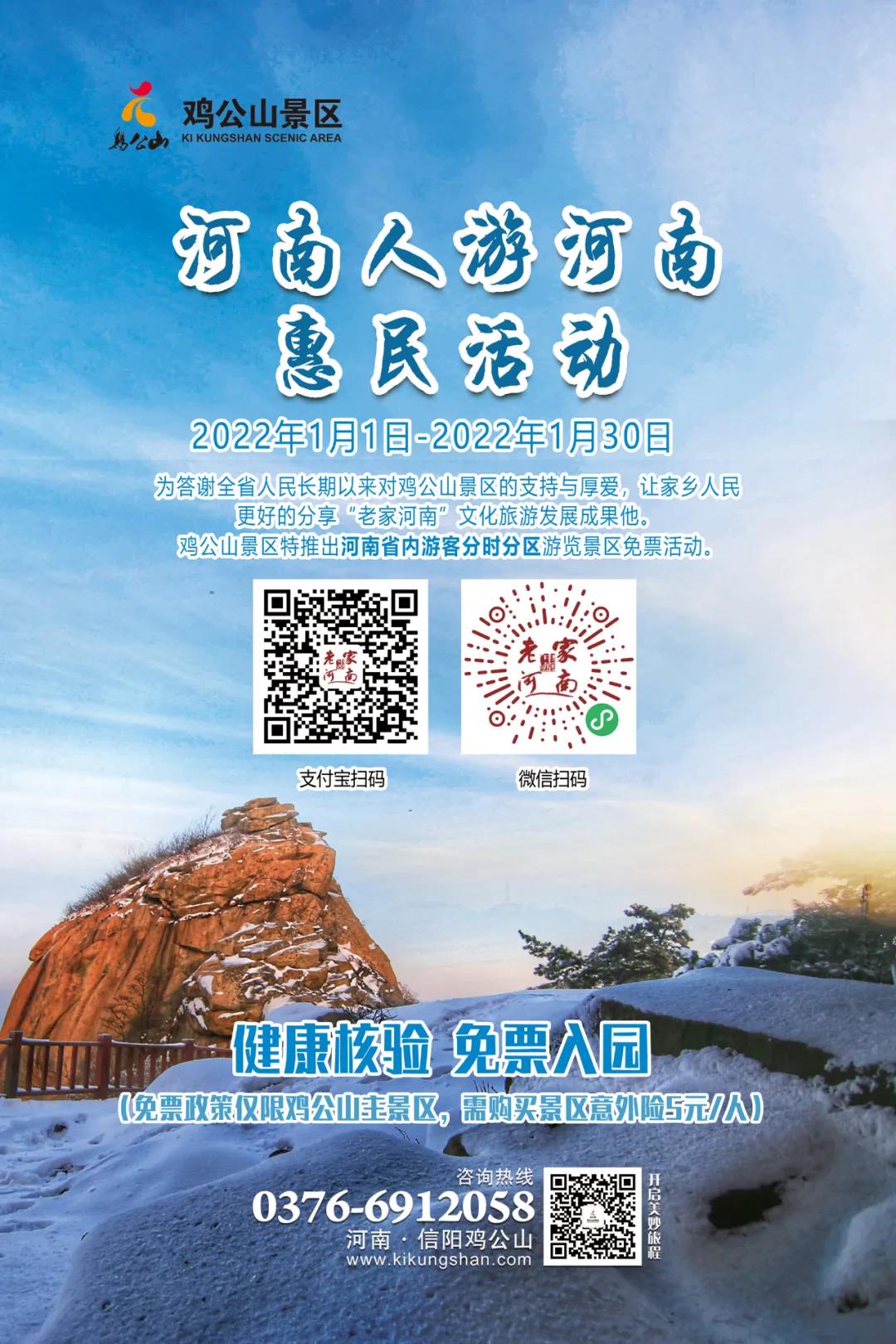 為進(jìn)一步貫徹落實黨中央、國務(wù)院促消費穩(wěn)增長工作精神,落實省、市黨代會工作部署,深入踐行以人民為中心的發(fā)展思想,致敬河南人民眾志成城、繆力同心、重建家園的奮斗精神,答謝全省人民長期以來對雞公山景區(qū)的支持與厚愛,讓家鄉(xiāng)人民更好的分享“老家河南”文化旅游發(fā)展成果,雞公山景區(qū)積極響應(yīng)河南省文化和旅游廳“河南人游河南”文旅惠民活動號召,在統(tǒng)籌文旅文創(chuàng)發(fā)展、強化疫情防控、做好文物保護(hù)和保障有序游覽的基礎(chǔ)上,開展主題為“行走河南·讀懂中國”主題活動。自2022年1月1日至2022年1月30日,雞公山景區(qū)對全省各城市居民實行分時、分區(qū)免門票參觀游覽。