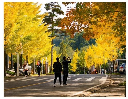 白云山上,白云山下大面積的銀杏林葉子,已經(jīng)開始發(fā)黃,經(jīng)霜色愈濃,天寒見金黃就在白云山中心廣場(chǎng)題詞碑處可見。銀杏林,五角楓,水杉樹,青皮椴,橙黃紅綠,以金黃為背景的片片紅葉,色彩更和諧,景色更壯美,簡(jiǎn)直就是秋風(fēng)打翻了一個(gè)調(diào)色板。白云山美成了一副斑斕的油畫。