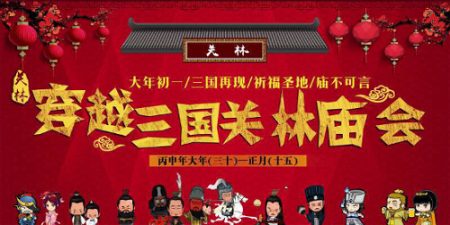 提起過春節(jié),“逛廟會(huì)”似乎已經(jīng)成為了人們過春節(jié)的標(biāo)配。隨著春節(jié)臨近,各色主題廟會(huì)也都在緊張地籌備過程中。近日,媒體了解到,今年春節(jié),洛陽廟會(huì)“始祖”——關(guān)林廟會(huì),將打造全國首個(gè)“穿越”主題廟會(huì)!同時(shí),這也是洛陽首次圍繞“三國”題材舉行的大型主題性活動(dòng)!