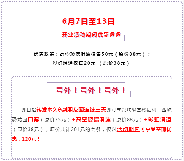 在玻璃上玩漂流?你敢來(lái)試試嗎?在高空激流沖浪!才有豪情萬(wàn)丈!6月7日,西峽恐龍園首家高空玻璃滑漂開(kāi)漂,你準(zhǔn)備好了嗎?