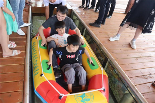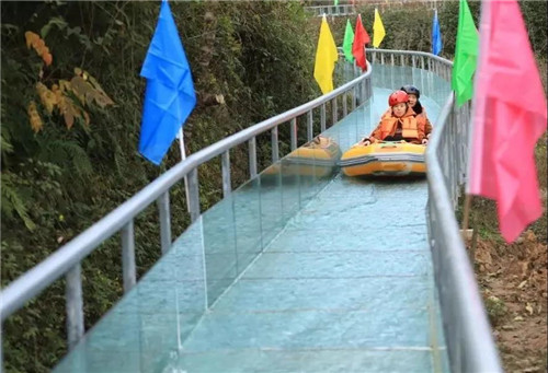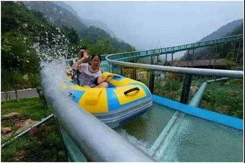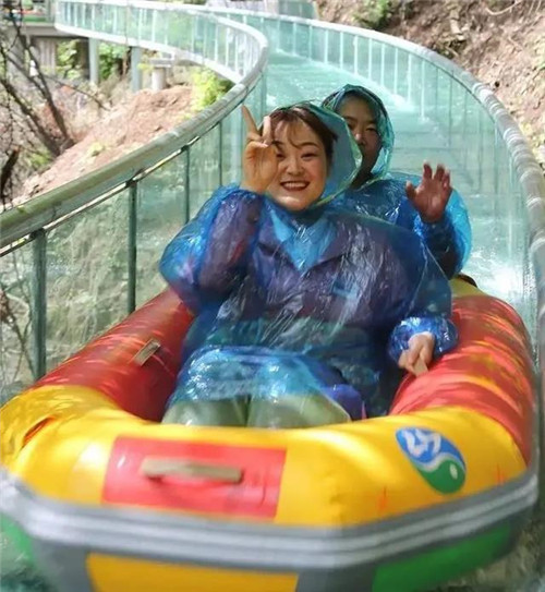 依靠水流和玻璃的落差,推動(dòng)橡皮艇前行,一只橡皮艇一次可乘坐2人,所以膽小的小伙伴也不用太害怕哦。