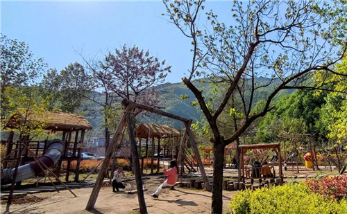 林中小屋,游玩沙池,木樁秋千……楊樹(shù)林蔭里,洋溢孩子們的歡笑,美美的享受家庭的歡樂(lè),怎一個(gè)愜意了得!