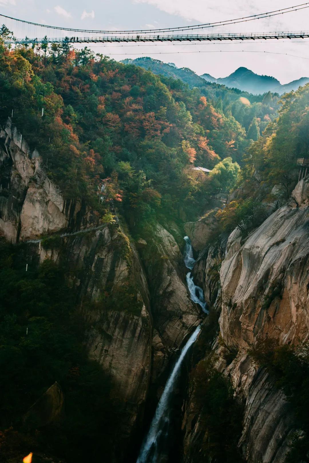 九龍瀑布落差123米,猶如一匹白練自天而降,鋪展出一幅“珠簾鉤不卷,匹練掛遙峰”的壯美畫(huà)面,在陽(yáng)光的照射下,時(shí)常出現(xiàn)七色彩虹,在這您與家人共話中秋佳節(jié)。