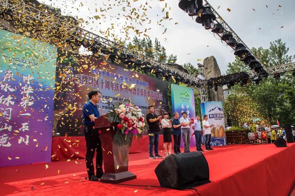 7月14日,“回首十年風(fēng)雨路,七十二潭永相伴”啤酒音樂狂歡節(jié)在七十二潭風(fēng)景區(qū)啟動(dòng)!方城縣政府黨組成員侯金耀、方城縣旅游局局長譚政、副局長邢巍等領(lǐng)導(dǎo)出席活動(dòng)。中國旅游報(bào)、河南日?qǐng)?bào)、河南電視臺(tái)、河南交通廣播、鳳凰網(wǎng)、河南旅游資訊網(wǎng)、大河網(wǎng)等50余家新聞媒體以及來自全國各地近兩萬名游客參加了開幕式。