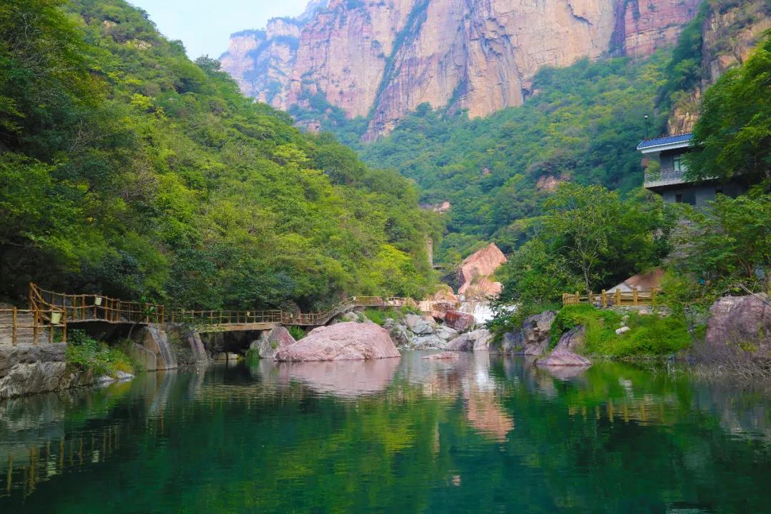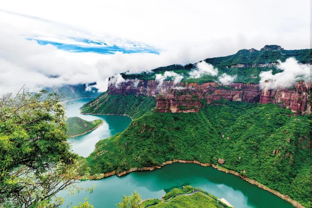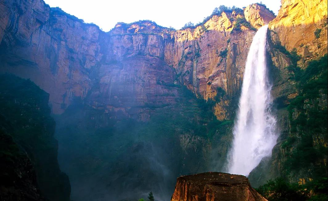 青山巍峨,高聳入云,“天上的河流”經(jīng)過(guò)形態(tài)各異的巖石間,奔騰而下,織成了一張張絲滑晶瑩的玉簾。