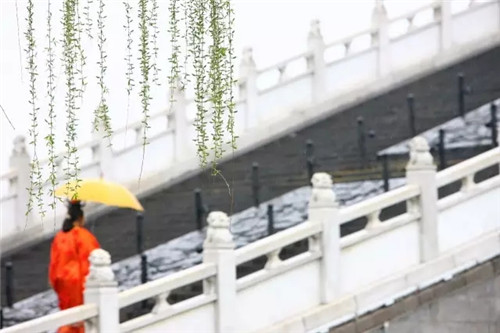 這次你來清明上河園 有風(fēng)、有雨、有素色的紙傘 白玉的欄桿向遠方伸展 尚憶去年春天同樣的時刻 南來的風(fēng)吹落你的傘,你的思念