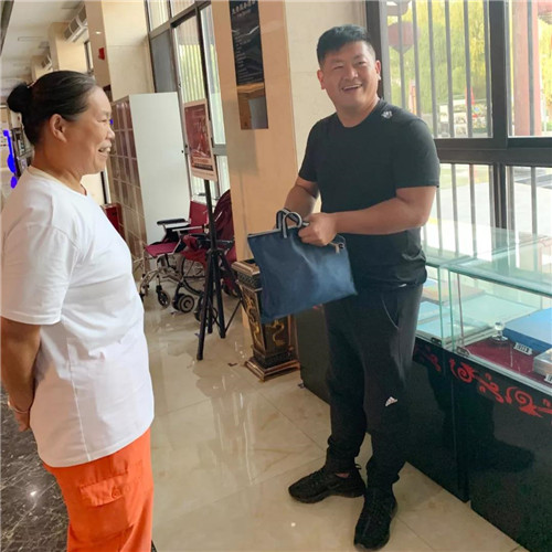 8月23日下午,來(lái)自江蘇省徐州市的游客劉偉先生帶著家人到景區(qū)參觀,參觀結(jié)束后,孩子隨手把包放到游客中心凳子上,然后一家人驅(qū)車離開景區(qū),途中加油時(shí)發(fā)現(xiàn)油卡不見(jiàn)了,隨即才想起手提包遺忘在了休息凳上,于是驅(qū)車返回。同一時(shí)間,景區(qū)保潔員朱貴榮在打掃衛(wèi)生時(shí)發(fā)現(xiàn)了該手提包,及時(shí)告知了游客中心服務(wù)人員,并一起通過(guò)游客包內(nèi)賬本上留的電話,及時(shí)聯(lián)系上了失主本人。失主到來(lái)時(shí)非常著急,詢問(wèn)后得知已被妥善保管,包內(nèi)財(cái)務(wù)無(wú)一丟失,感到非常高興,并連聲致謝。同時(shí)拿出500元錢對(duì)保潔員朱貴榮表示感謝,被保潔員婉言謝絕了。朱貴榮說(shuō):“都是我們景區(qū)員工應(yīng)該做的,只要包沒(méi)丟,就好,歡迎你們?cè)賮?lái)芒碭山旅游區(qū)。”