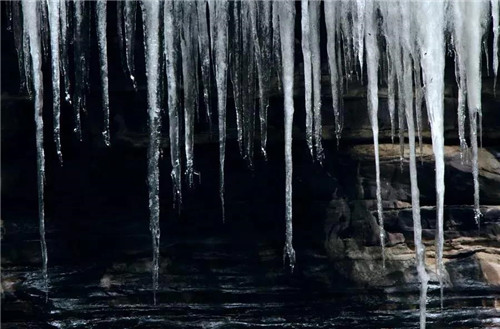 行走在這水簾洞之內(nèi),欣賞各式各樣的冰柱、冰掛,感受“大珠小珠落玉盤”,一時(shí)間竟以為是到了冰消雪融的初春時(shí)節(jié)。