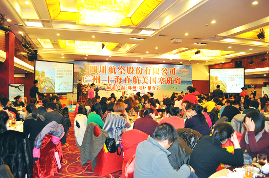 23日下午,四川航空股份有限公司聯(lián)合天寧皇朝假期旅游包機(jī)公司在鄭州舉行美國(guó)塞班島旅游產(chǎn)品推介說(shuō)明會(huì),會(huì)議邀請(qǐng)了鄭州市旅游局相關(guān)負(fù)責(zé)人,省內(nèi)多家大型旅行社以及主流媒體參加,為今后鄭州直飛塞班島包機(jī)打下了堅(jiān)實(shí)的基礎(chǔ)。