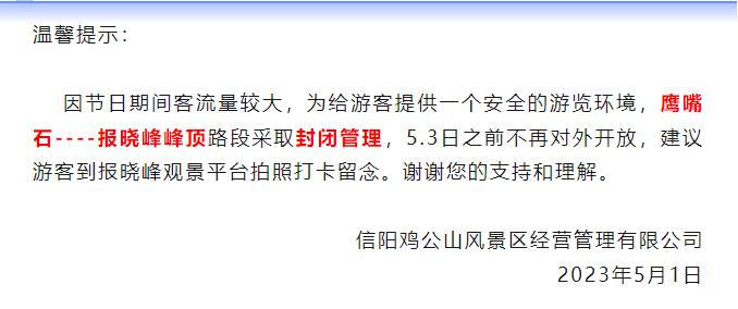 【提醒】雞公山報(bào)曉峰峰頂5月3日之前實(shí)行封閉管理