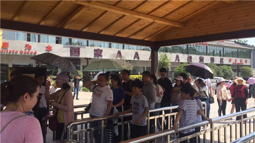 來自全國各地的游客排隊進(jìn)入恐龍遺跡園景區(qū),其中來自西安和湖北的游客占比較高。