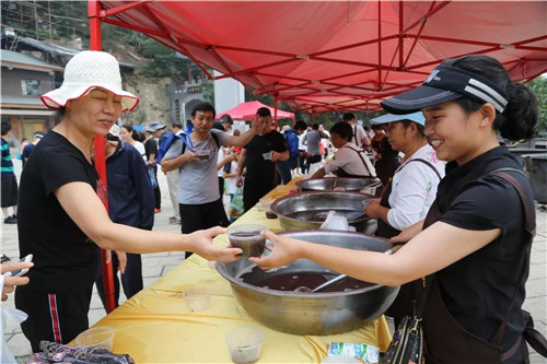 8月4日,記者在老君山云景索道上站看到,工作人員正在給上山游客發(fā)放“禮品袋”。禮品袋內(nèi)放的是煮熟的玉米棒、礦泉水、桃子。在中天門,工作人員支起大鍋,熬制綠豆湯,免費(fèi)供游客品嘗。當(dāng)天供發(fā)放“禮品袋”超20000余個(gè)。據(jù)了解,本次發(fā)放的玉米棒均從老君山黨支部共建黨支部潭頭古城村當(dāng)?shù)剞r(nóng)民手中收購。