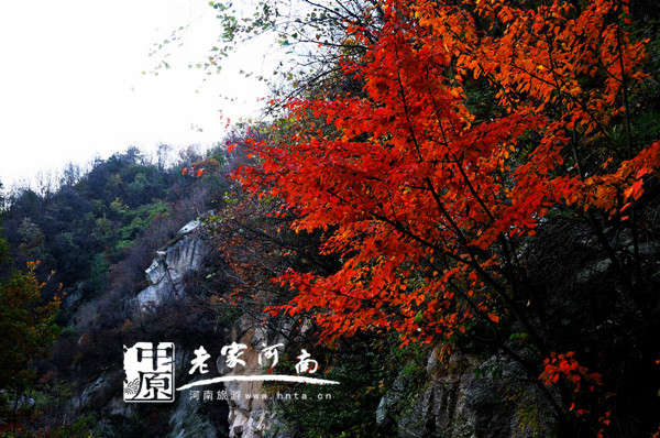 堯山植物品種豐富,針、闊葉林混交雜生,每到秋季,黃、紅、橙、棕各色霜葉顏色交織,顯得格外鮮艷奪目。堯山以楓葉、黃櫨、烏桕、槭樹的艷麗形成秋色主調(diào)。紅得似火,爛漫似霞;黃的似金,奪目耀眼。陽光撒滿葉面時的玲瓏剔透,讓人想到瑪瑙、琥珀的光澤和浸潤。