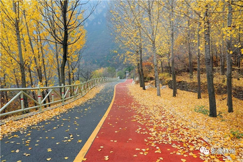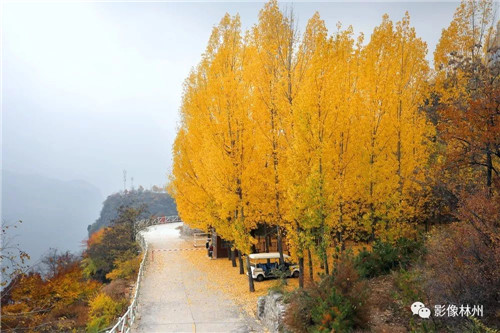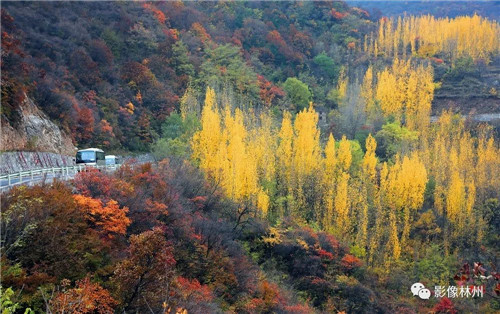 一株株、一排排挺拔的白楊樹下,鋪滿了被季節(jié)和風(fēng)兒“肅殺”了的枯葉,猶如一張巨大的地毯在地面上自由伸展。猶如披上盛裝的太行山,被深紅、翠綠、金黃所包圍,勾畫出一幅色彩豐富更富有詩情的畫卷。